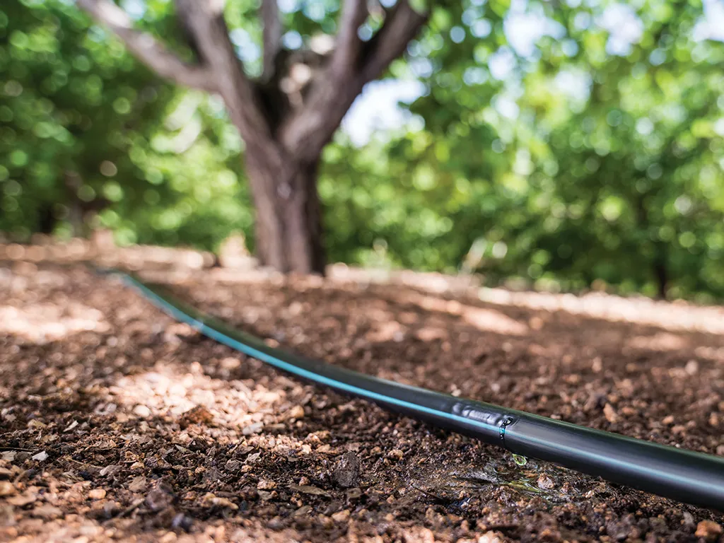 Tubería con gotero integrado PC700; con un sistema de autocompensación de última generación, amplio filtro de entrada y unos pasos internos amplios; presenta una gama de caudales óptima para el almendro, desde 1,1 a 2,2 l/h. En diámetros de tubería de 16 y 20 mm y en versión antisucción (AS) que evita la entrada de partículas en el interior del gotero.